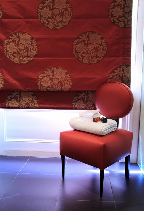 Soft furnishings in the bathroom were used to add colour, pattern & texture. The selection of heritage colours enhanced the classic style of the house. A modern interpretation of a freestanding bathtub & floor standing tap once again reflect on the Victorian character of the house. Wallpaper was used instead of tiles to let the room breathe, incorporating the pattern used on the roman blind.